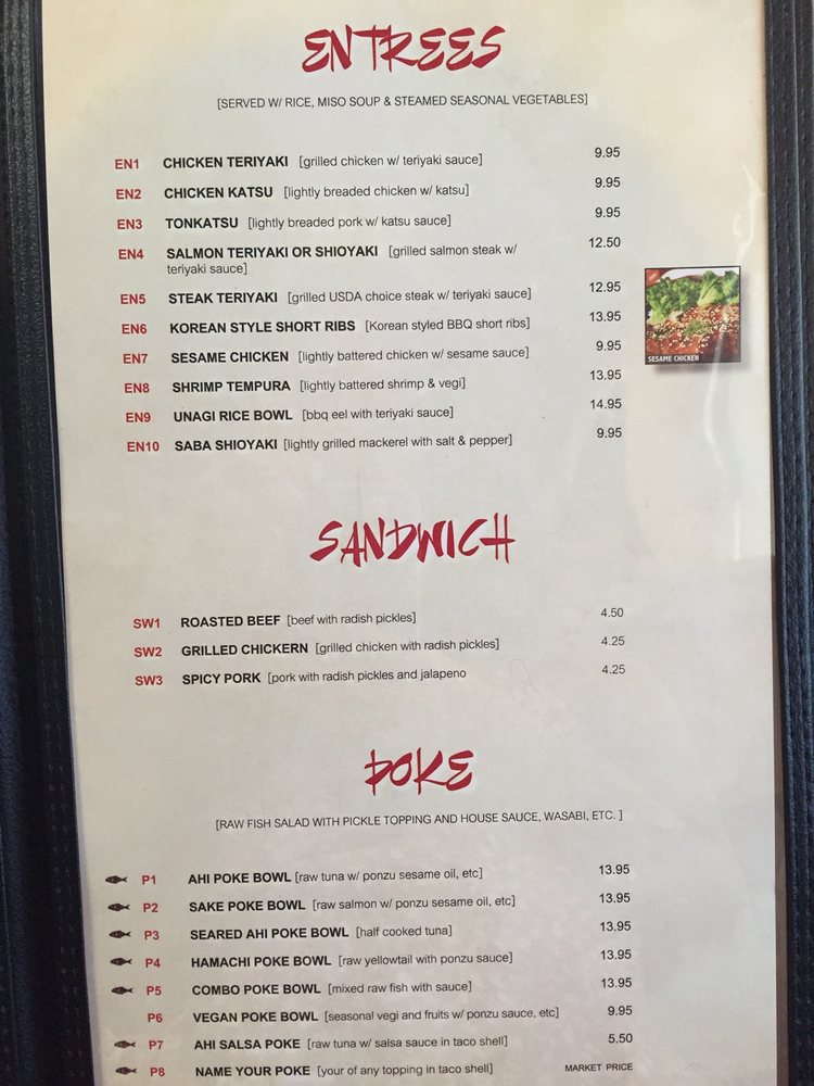 The sashimi offerings are equally enticing, showcasing fresh, high-quality fish like Maguro and Sake, perfect for sashimi enthusiasts. Oba also caters to varied palates with appealing honor items such as Walnut Shrimp and General Chicken. The warm service paired with an inviting atmosphere makes each visit memorable. Whether you crave ramen or unique sushi rolls, Oba Japanese Kitchen promises a flavorful experience that keeps diners returning for more!